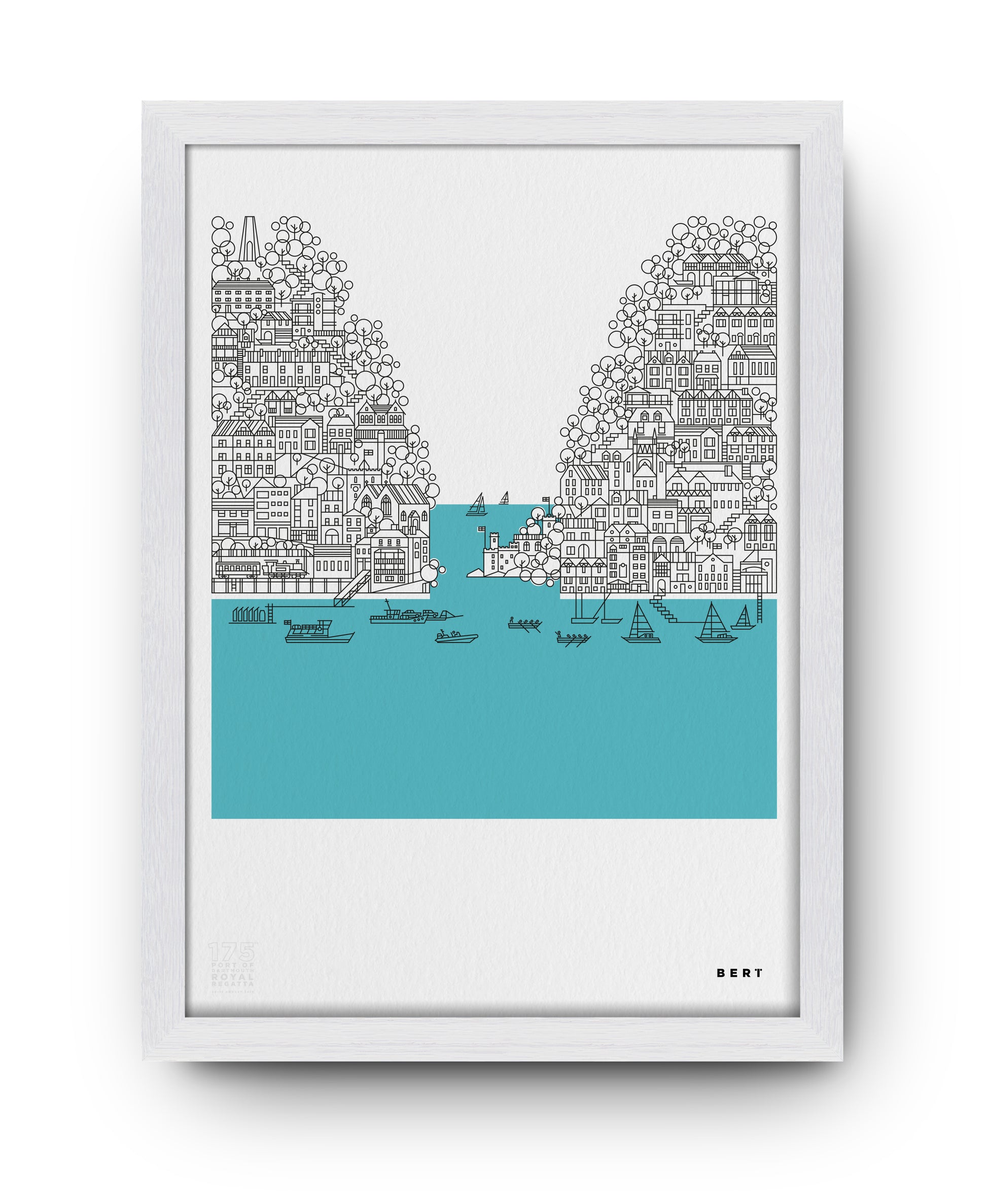 The Limited Edition Port of Dartmouth Royal Regatta artwork with views of both Dartmouth and Kingswear in Devon. Exclusively drawn, illustrated and created by Devon artist Bert Fowler to celebrate this incredible part of life on the British coast.